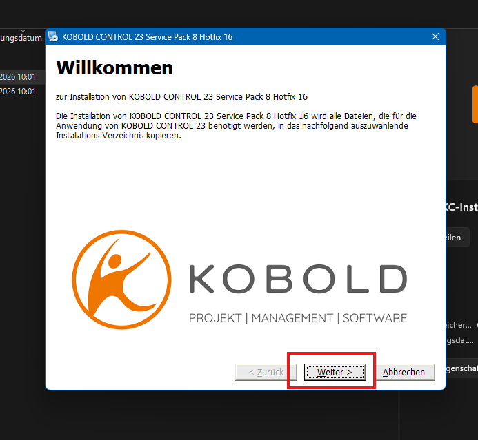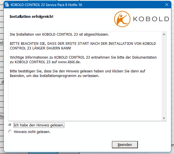 Alle Anwender müssen KOBOLD CONTROL vorher schließen